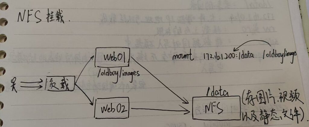 • 用户在web01服务器上传数据到 /oldboy/images/ 时,实际上是把数据上传到NFS服务器的 /data/ 目录